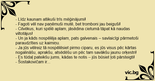 - Par tādu solo es būtu gatavs jūs noskūpstīt, žēl ka sēžat tik tālu! Rīt desmitos no rīta gaidu jūs savā kabinetā!
