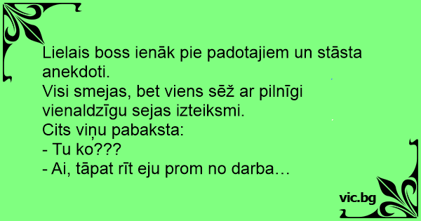 Lielais boss ienāk pie padotajiem un stāsta anekdoti.