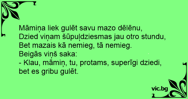 - Klau, māmiņ, tu, protams, superīgi dziedi, bet es gribu gulēt.