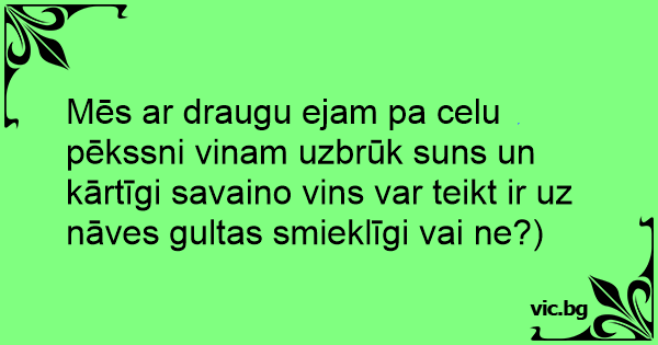 Mēs ar draugu ejam pa celu pēkssni vinam uzbrūk suns un kārtīgi savaino vins var teikt ir uz nāves gultas smieklīgi vai ne?)