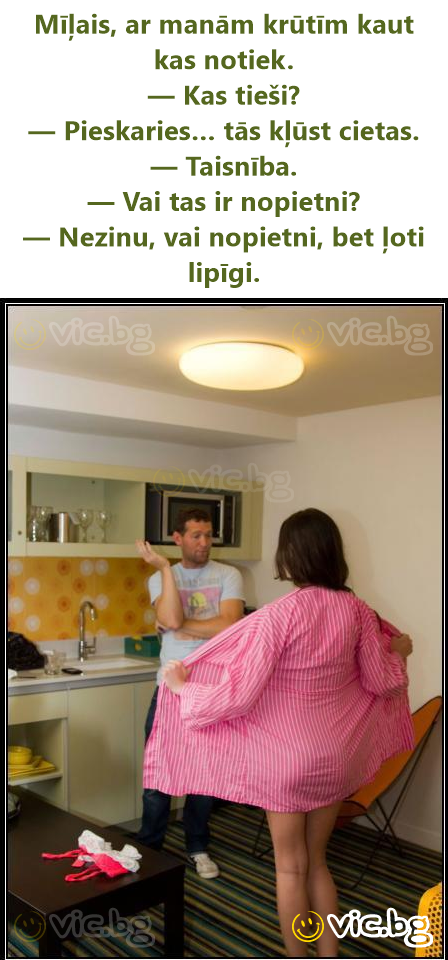 - Скъпи, нещо става с гърдите ми. - Какво им става? - Пипни ги… втвърдяват се. - Вярно е. - Сериозно ли е? - Дали е сериозно не знам, но е много заразно. Душо, нешто ми се случува со градите. — Што им е? — Допрe ги… се стврднуваат. — Вистина е. — Дали е сериозно? — Сериозно не знам, ама многу е заразно. Honey, something is happening to my воовs. — What’s wrong with them? — Touch them… they get hard. — That’s true. — Is it serious? — I don’t know if it’s serious, but it’s very contagious. Cariño, me pasa algo en las tetas. — ¿Qué les pasa? — Tócalas… se ponen duras. — Es verdad. — ¿Será grave? — Grave no sé, pero es muy contagioso. Дорогой, с моей грудью что-то происходит. — Что с ней? — Потрогай… она твердеет. — Правда. — Это серьёзно? — Не знаю, серьёзно ли, но очень заразно. Schatz, mit meinen Brüsten stimmt etwas niсhт. — Was ist denn los? — Fass sie an… sie werden hart. — Stimmt. — Ist das schlimm? — Ob schlimm, weiß ich niсhт, aber sehr ansteckend. Chéri, il m’arrive quelque chose aux seins. — Qu’est-ce qu’ils ont ? — Touche-les… ils deviennent durs. — C’est vrai. — C’est grave ? — Grave, je ne sais pas, mais très contagieux. Αγάπη μου, κάτι συμβαίνει με το στήθος μου. — Τι συμβαίνει; — Άγγιξέ το… σκληραίνει. — Είναι αλήθεια. — Είναι σοβαρό; — Δεν ξέρω αν είναι σοβαρό, αλλά είναι πολύ μεταδοτικό. Tesoro, mi succede qualcosa al seno. — Cosa succede? — Toccalo… diventa durо. — È vero. — È grave? — Grave non so, ma è molto contagioso. Canım, göğüslerimde bir şey oluyor. — Ne oluyor? — Dokun… sertleşiyorlar. — Doğru. — Ciddi mi? — Ciddi mi bilmiyorum ama çok bulaşıcı. Коханий, з моїми грудьми щось відбувається. — Що саме? — Доторкнись… вони твердішають. — Правда. — Це серйозно? — Не знаю, чи серйозно, але дуже заразно. Querido, está a acontecer algo com os meus seios. — O quê? — Toca… ficam duros. — É verdade. — É grave? — Grave não sei, mas é muito contagioso. Kochanie, coś dzieje się z moimi piersiami. — Co takiego? — Dotknij… robią się twarde. — To prawda. — To poważne? — Nie wiem, czy poważne, ale bardzo zaraźliwe. Älskling, något händer med mina bröst. — Vad händer? — Rör vid dem… de blir hårda. — Det stämmer. — Är det allvarligt? — Vet inte om det är allvarligt, men väldigt smittsamt. Schat, er is iets aan de hand met mijn borsten. — Wat dan? — Raak ze aan… ze worden hard. — Dat klopt. — Is het ernstig? — Of het ernstig is weet ik niet, maar het is erg besmettelijk. Skat, der sker noget med mine bryster. — Hvad da? — Rør ved dem… de bliver hårde. — Det er rigtigt. — Er det alvorligt? — Om det er alvorligt ved jeg ikke, men meget smitsomt. Skat, det skjer noe med brystene mine. — Hva da? — Ta på dem… de blir harde. — Det stemmer. — Er det alvorlig? — Vet ikke om det er alvorlig, men veldig smittsomt. Rakas, rinnoissani tapahtuu jotain. — Mitä? — Koske… ne kovettuvat. — Se on totta. — Onko se vakavaa? — En tiedä onko vakavaa, mutta hyvin tarttuvaa. Drágám, valami történik a melleimmel. — Mi az? — Érintsd meg… megkeményednek. — Igaz. — Ez komoly? — Nem tudom, mennyire komoly, de nagyon fertőző. Dragule, se întâmplă ceva cu sânii mei. — Ce anume? — Atinge-i… se întăresc. — Adevărat. — E grav? — Nu știu dacă e grav, dar e foarte contagios. Miláčku, něco se děje s mými prsy. — Co se děje? — Dotkni se… ztvrdnou. — Je to pravda. — Je to vážné? — Nevím, jestli vážné, ale hodně nakažlivé. Brangusis, kažkas vyksta su mano krūtine. — Kas? — Paliesk… jos sukietėja. — Tiesa. — Ar tai rimta? — Nežinau, ar rimta, bet labai užkrečiama. Dragi, nešto se događa s mojim grudima. — Što točno? — Dodirni ih… otvrdnu. — Istina. — Je li ozbiljno? — Ne znam je li ozbiljno, ali jako je zarazno.