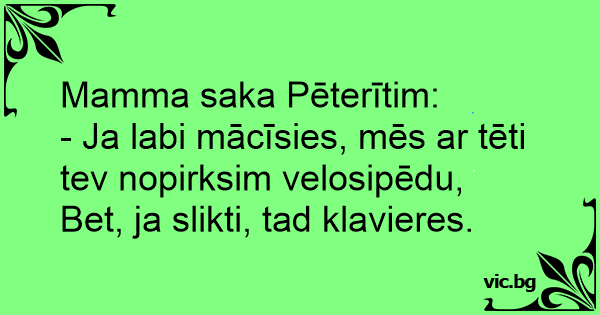 - Ja labi mācīsies, mēs ar tēti tev nopirksim velosipēdu,