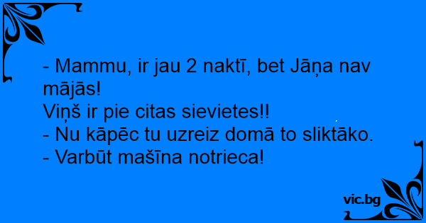 - Mammu, ir jau 2 naktī, bet Jāņa nav mājās!