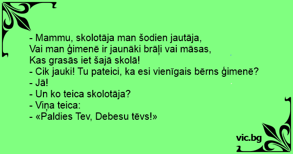 - Mammu, skolotāja man šodien jautāja,
