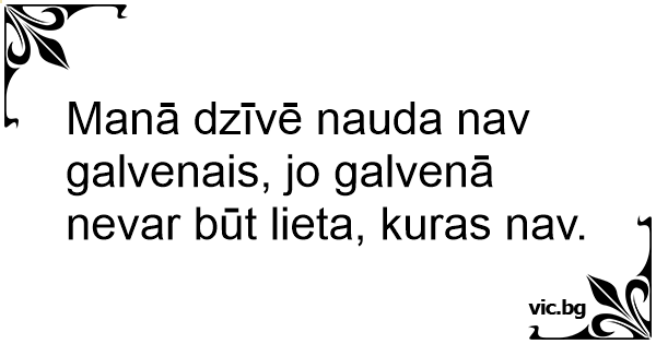 Manā dzīvē nauda nav galvenais, jo galvenā nevar būt lieta, kuras nav.