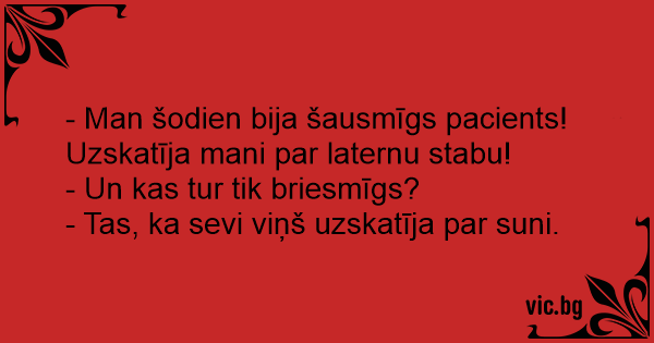 - Man šodien bija šausmīgs pacients! Uzskatīja mani par laternu stabu!