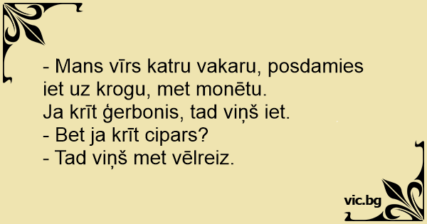 - Mans vīrs katru vakaru, posdamies iet uz krogu, met monētu.