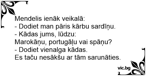 - Dodiet man pāris kārbu sardīņu.