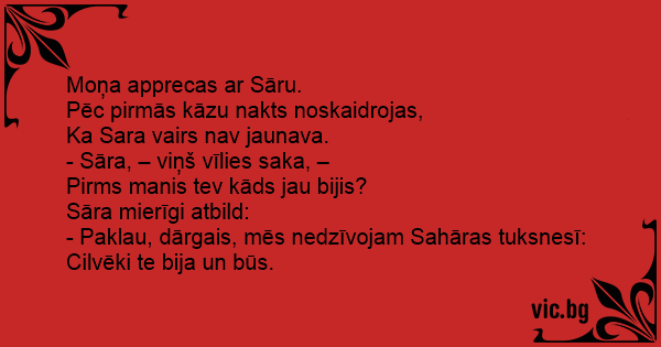 - Paklau, dārgais, mēs nedzīvojam Sahāras tuksnesī: