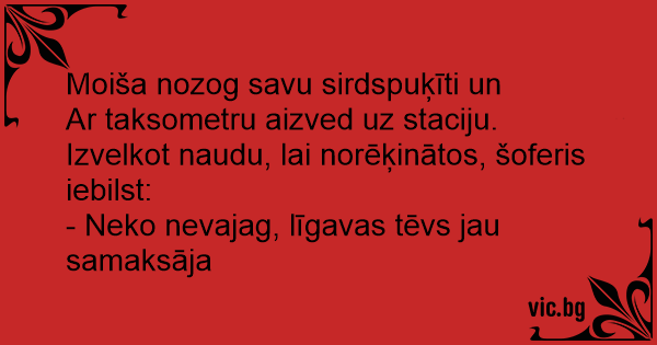 - Neko nevajag, līgavas tēvs jau samaksāja