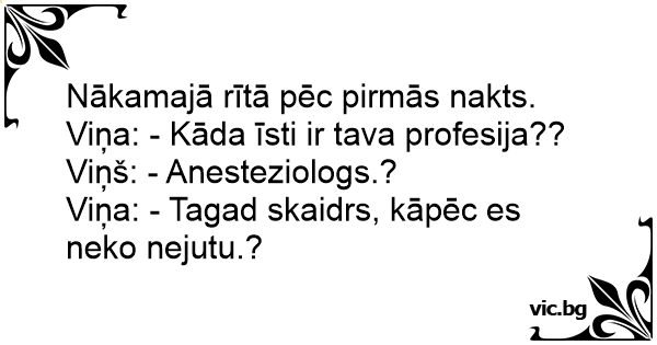 Viņa: - Tagad skaidrs, kāpēc es neko nejutu.?