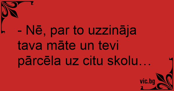 - Nē, par to uzzināja tava māte un tevi pārcēla uz citu skolu…