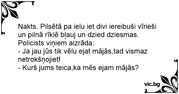- Ja jau jūs tik vēlu ejat mājās,tad vismaz netrokšņojiet!