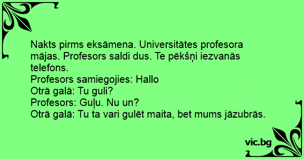 Nakts pirms eksāmena. Universitātes profesora mājas. Profesors saldi dus. Te pēkšņi iezvanās telefons.