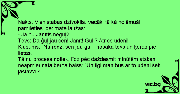 Tēvs: Da ģuļ jau sen! Jānīt! Guli? Atnes ūdeni!