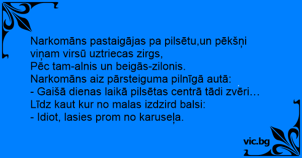 Narkomāns pastaigājas pa pilsētu,un pēkšņi viņam virsū uztriecas zirgs,