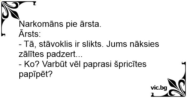 - Tā, stāvoklis ir slikts. Jums nāksies zālītes padzert...