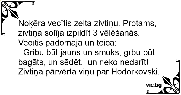 Noķēra vecītis zelta zivtiņu. Protams, zivtiņa solīja izpildīt 3 vēlēšanās.