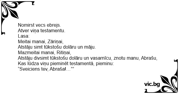 Kas lūdza viņu pieminēt testamentā, pieminu: