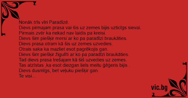 Tad dievs prasa trešajam kā šiš uzvedies uz zemes.