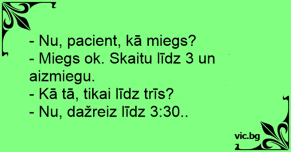 - Nu, pacient, kā miegs? -...