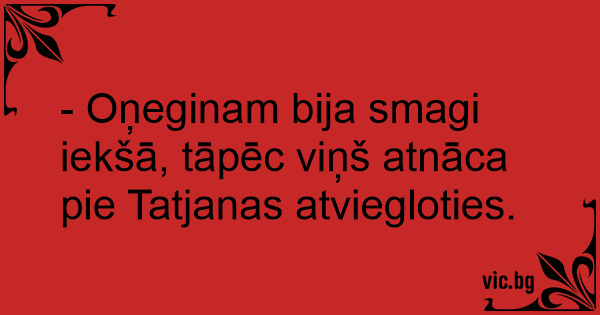 - Oņeginam bija smagi iekšā, tāpēc viņš atnāca pie Tatjanas atviegloties.