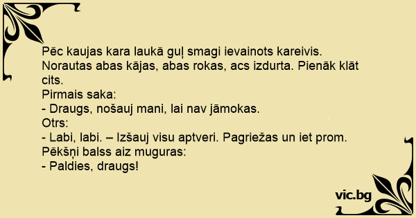 - Labi, labi. – Izšauj visu aptveri. Pagriežas un iet prom.