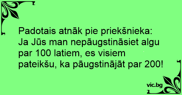 Ja Jūs man nepāugstināsiet algu par 100 latiem, es visiem pateikšu, ka pāugstinājāt par 200!