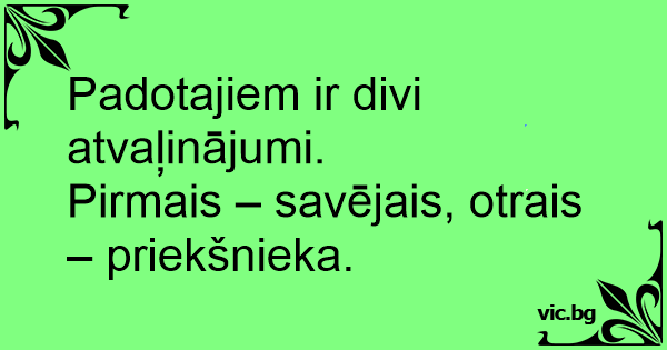 Pirmais – savējais, otrais – priekšnieka.