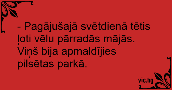 - Pagājušajā svētdienā tētis ļoti vēlu pārradās mājās. Viņš bija apmaldījies pilsētas parkā.