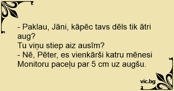 - Paklau, Jāni, kāpēc tavs dēls tik ātri aug?