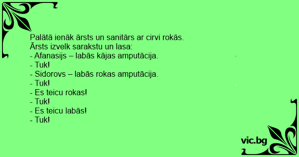 Palātā ienāk ārsts un sanitārs ar cirvi rokās.