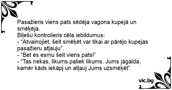 Pasažieris viens pats sēdēja vagona kupejā un smēķēja.