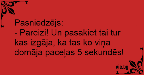 - Pareizi! Un pasakiet tai tur kas izgāja, ka tas ko viņa domāja paceļas 5 sekundēs!