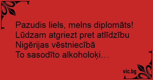 Pazudis liels, melns diplomāts!