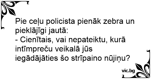 Pie ceļu policista pienāk zebra un pieklājīgi jautā:
