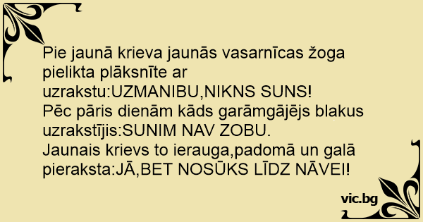 Jaunais krievs to ierauga,padomā un galā pieraksta:JĀ,BET NOSŪKS LĪDZ NĀVEI!