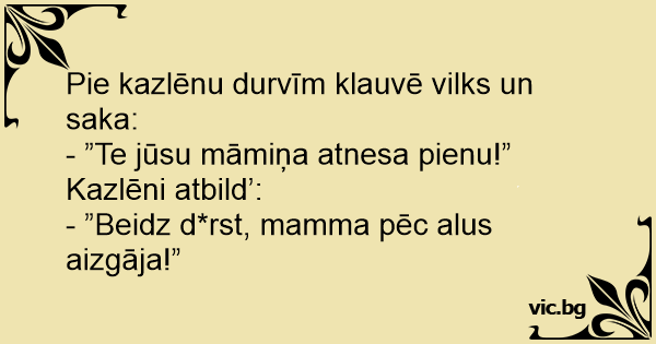 Pie kazlēnu durvīm klauvē vilks un saka: