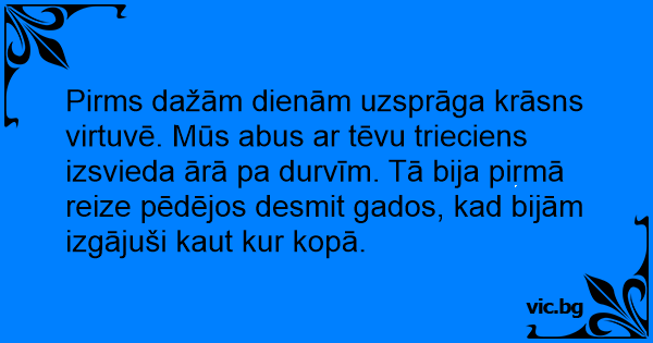 Pirms dažām dienām uzsprāga krāsns virtuvē. Mūs abus ar tēvu trieciens izsvieda ārā pa durvīm. Tā bija pirmā reize pēdējos desmit gados, kad bijām izgājuši kaut kur kopā.