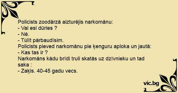 Полицаец фатил наркоман во зоолошка градина: Полицай хваща наркоман в зоологическата градина и го пита: Полицай хванал наркоман в зоологическата градина: