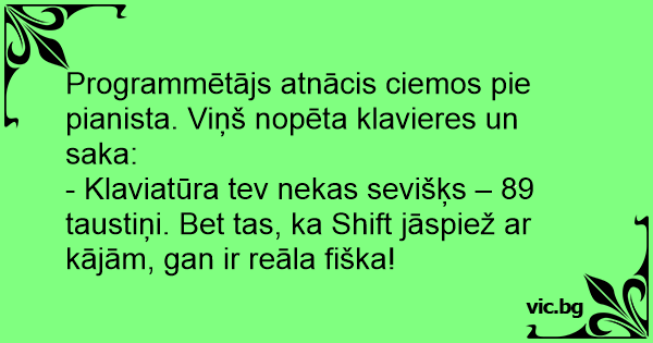 Programmētājs atnācis ciemos pie pianista. Viņš nopēta klavieres un saka: