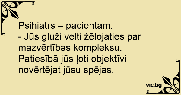 - Jūs gluži velti žēlojaties par mazvērtības kompleksu.