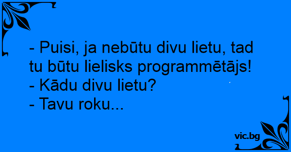 - Puisi, ja nebūtu divu lietu, tad tu būtu lielisks programmētājs!