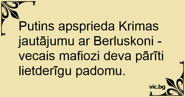 Putins apsprieda Krimas jautājumu ar Berluskoni - vecais mafiozi deva pārīti lietderīgu padomu.