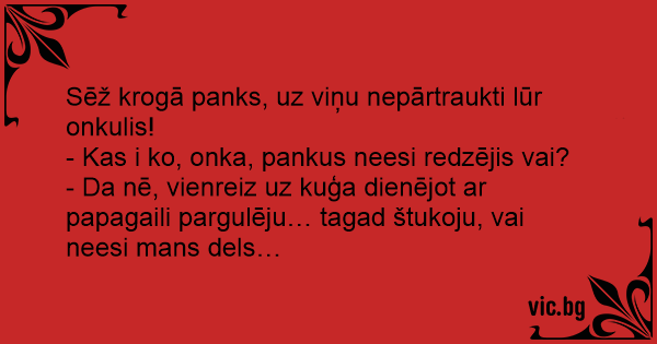 - Da nē, vienreiz uz kuģa dienējot ar papagaili pargulēju… tagad štukoju, vai neesi mans dels…