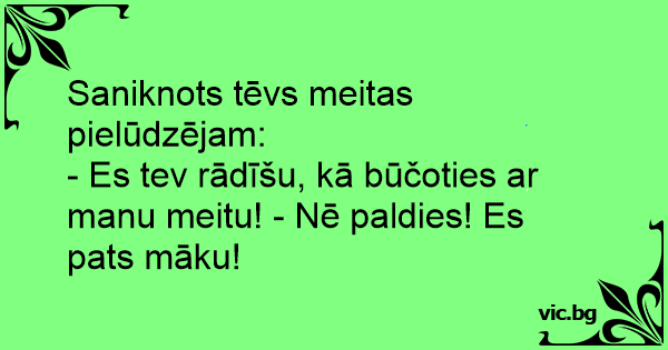 - Es tev rādīšu, kā būčoties ar manu meitu! - Nē paldies! Es pats māku!