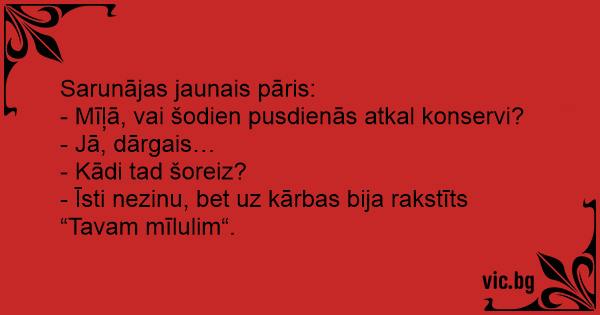 - Mīļā, vai šodien pusdienās atkal konservi?