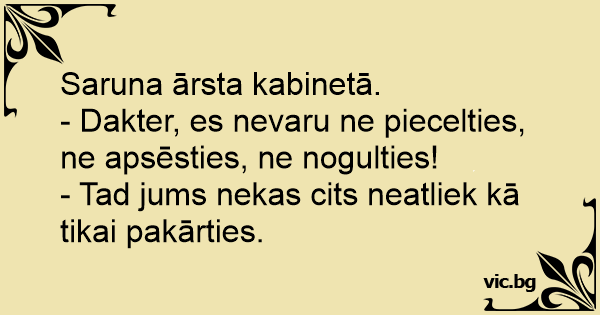 - Dakter, es nevaru ne piecelties, ne apsēsties, ne nogulties!