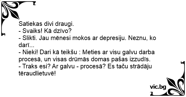 - Traks esi? Ar galvu - procesā? Es taču strādāju tēraudlietuvē!