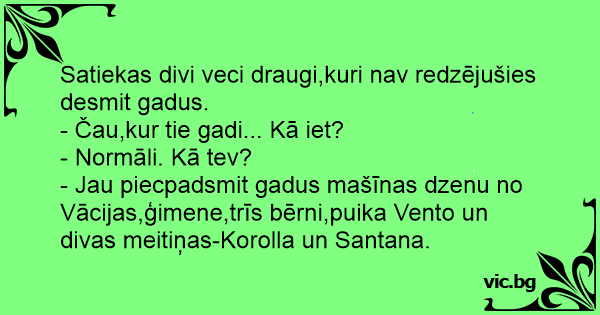 Satiekas divi veci draugi,kuri nav redzējušies desmit gadus.